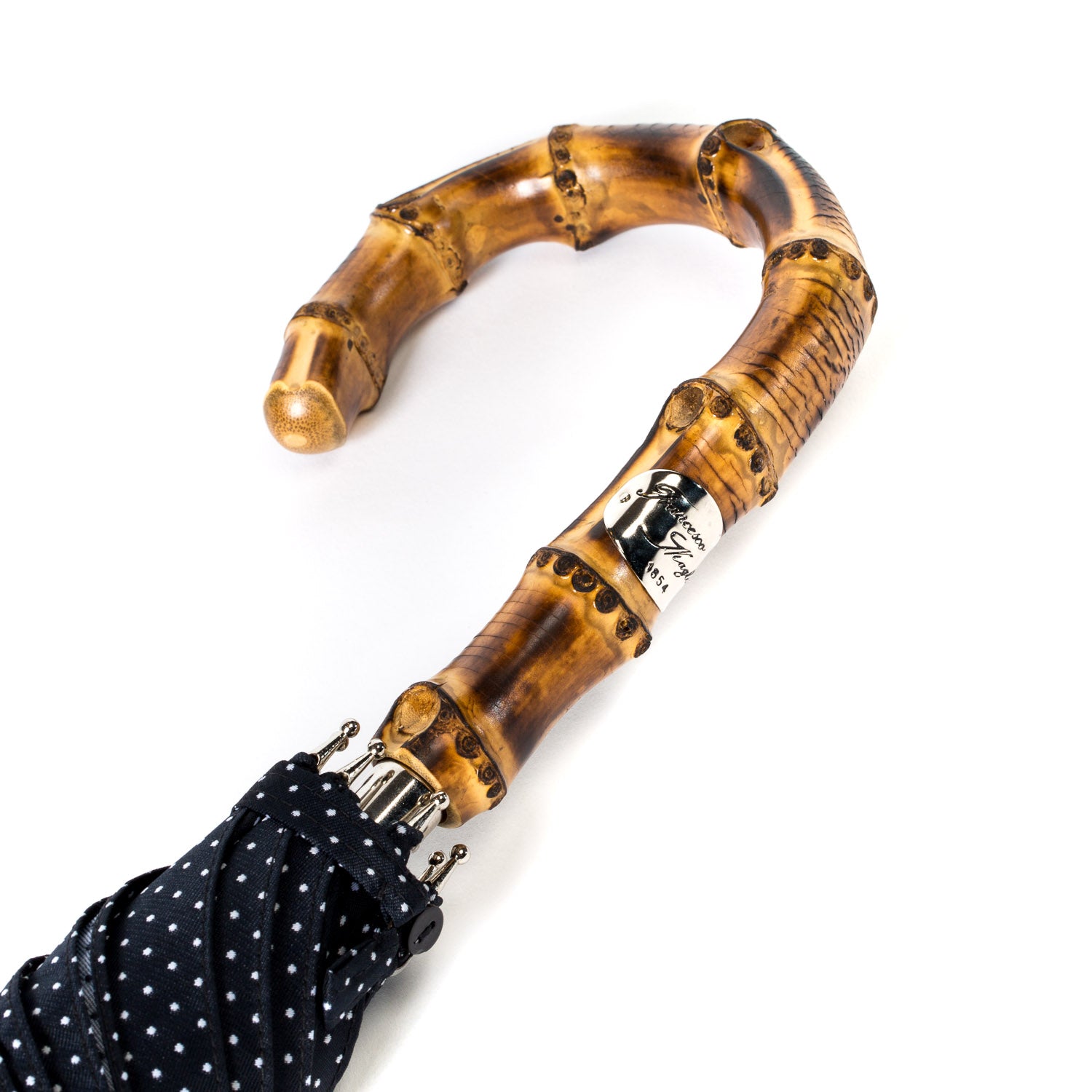 For your trips please use this umbrella: the "Traveller". If it is not supposed to be a telescopic umbrella but you still want to stay dry while traveling, then you are perfectly equipped with this model by Francesco Maglia. The umbrella has a solid wooden frame and thanks to its removable wooden handle and the unscrewable tip, it can be perfectly stored in your bag.