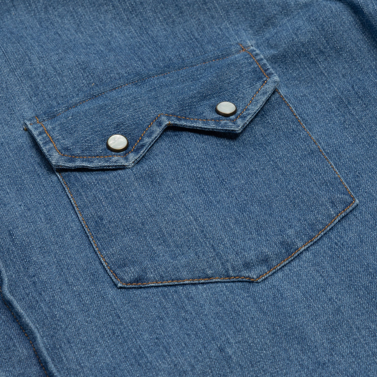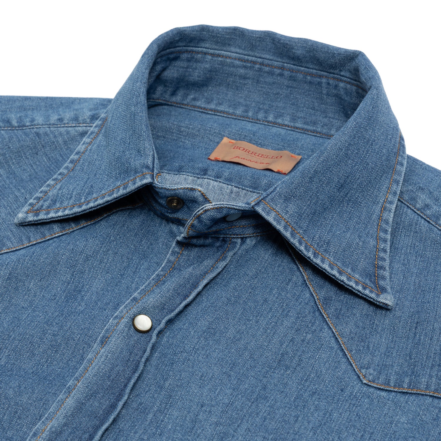 The soft washed Japanese cotton denim from Kuroki , in combination with the super soft collar "Clint" and the typical snap buttons with mother-of-pearl inlet, makes this shirt a special specialty from the shirt manufactory Borriello and an important icon of your wardrobe.