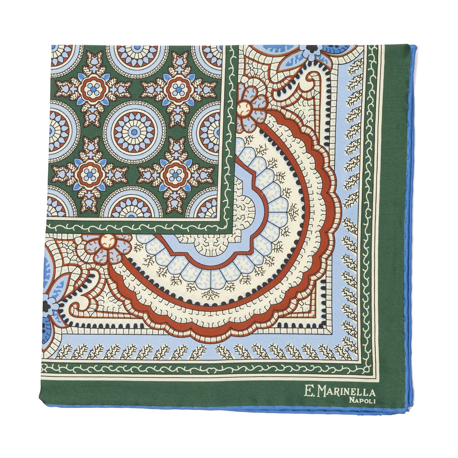 E.Marinella steht für DIE neapolitanische Krawatte und ist durch diese, aus in England handbedruckter Seide, weltbekannt geworden. Hier auch als Einstecktuch in einzigartiger Qualität und natürlich von Hand rolliert.