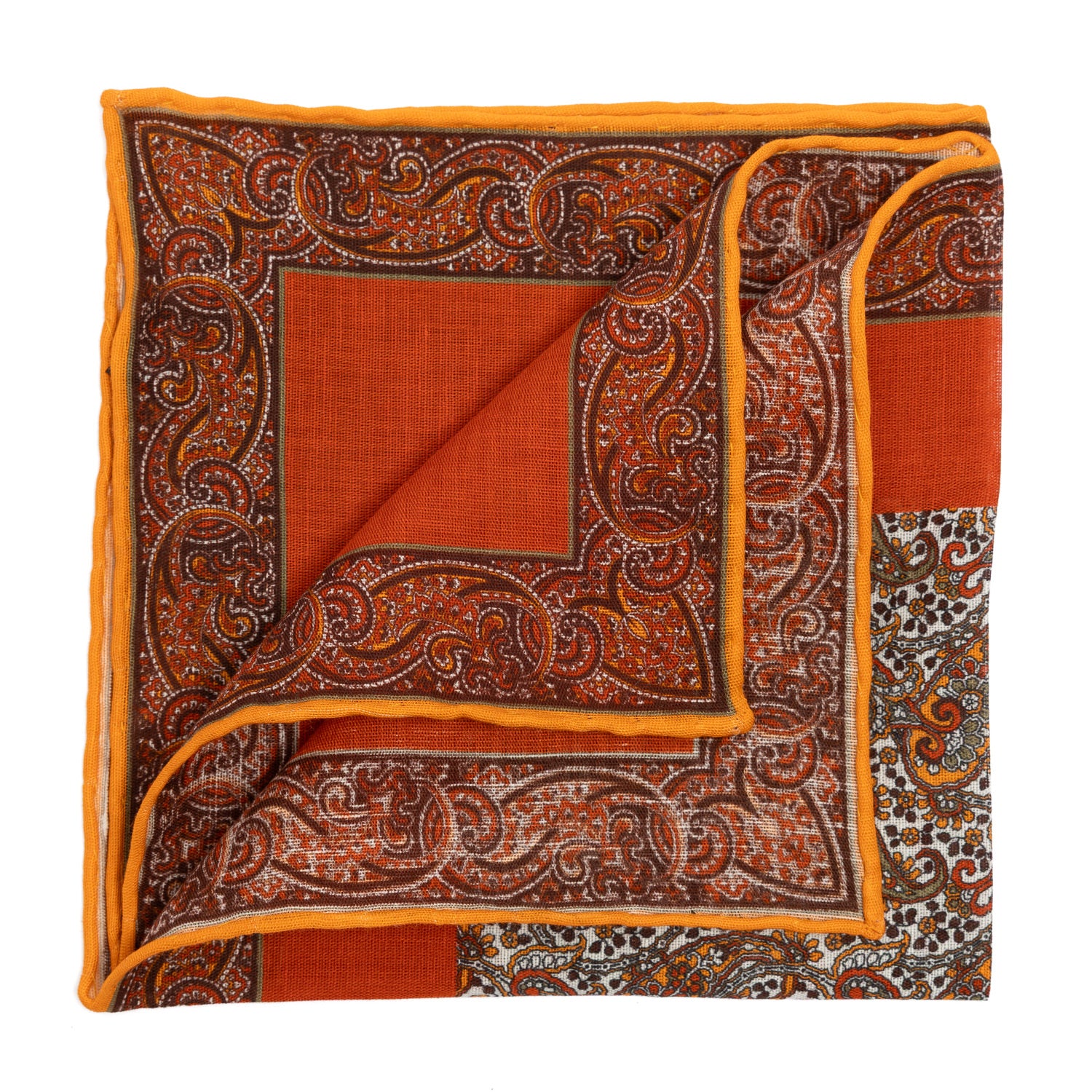 Pocket Square "Paisley Incrati" made of Cotton, Silk and Linen - Hand-rolled