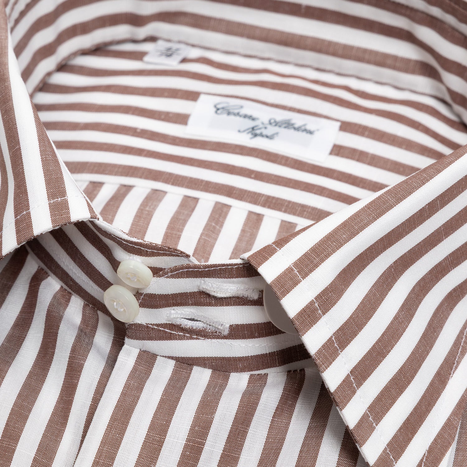 - Hand-embroidered buttonholes and buttons sewn with 3-point stitch "Zampa di Gallina"