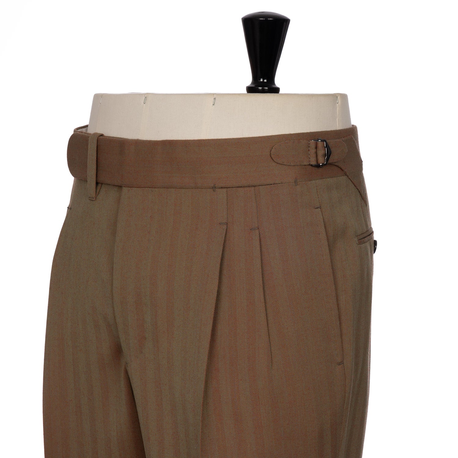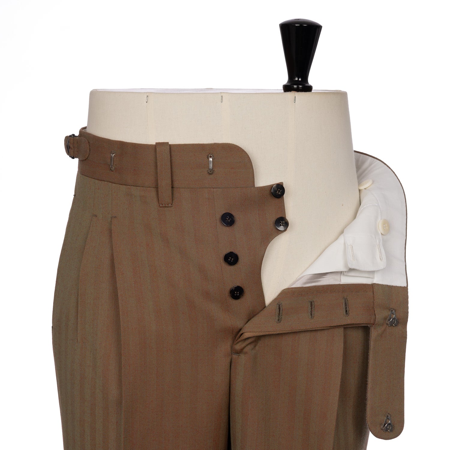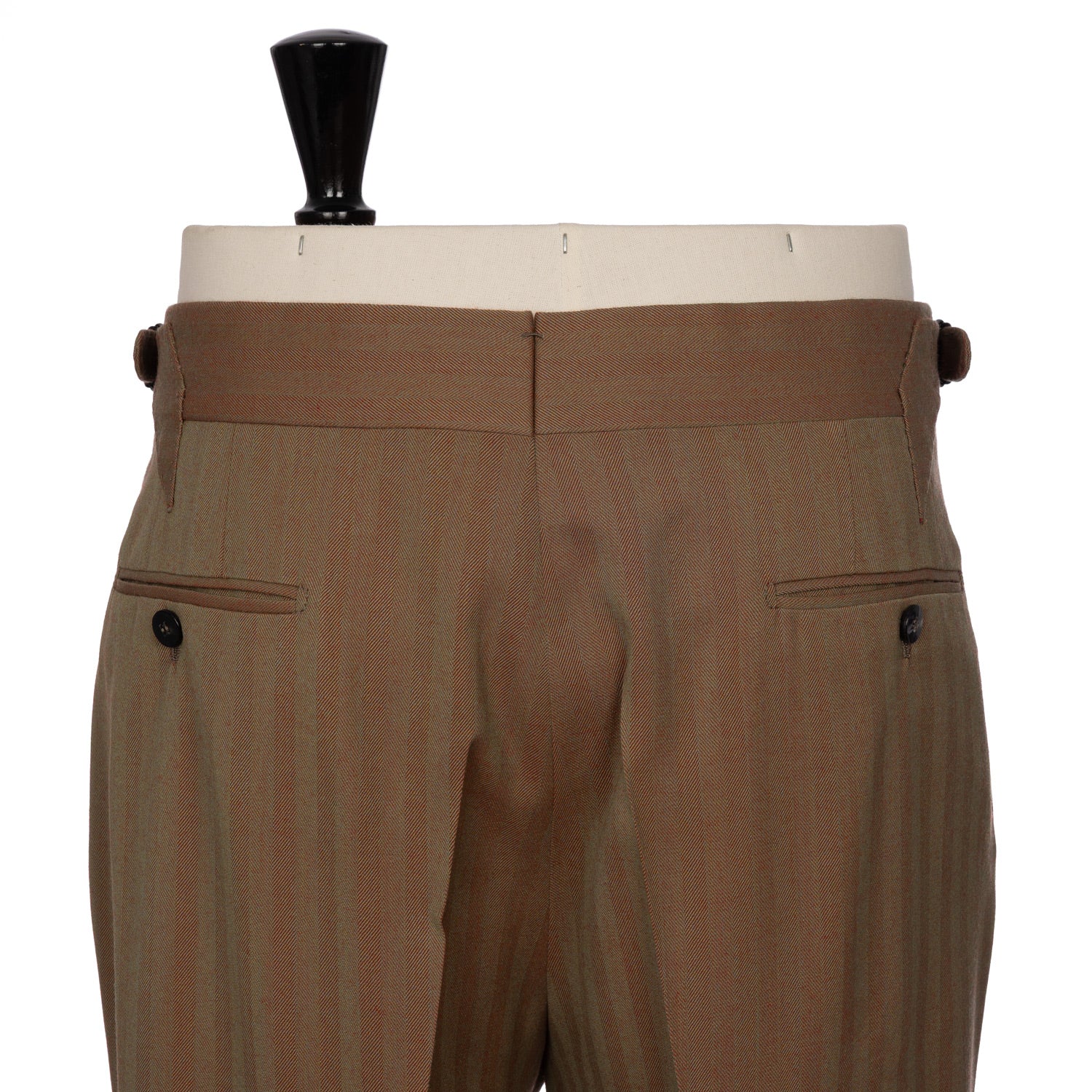 • 4.5 cm wide extended waistband with sartorial hooks "Prolungato e Gancio"