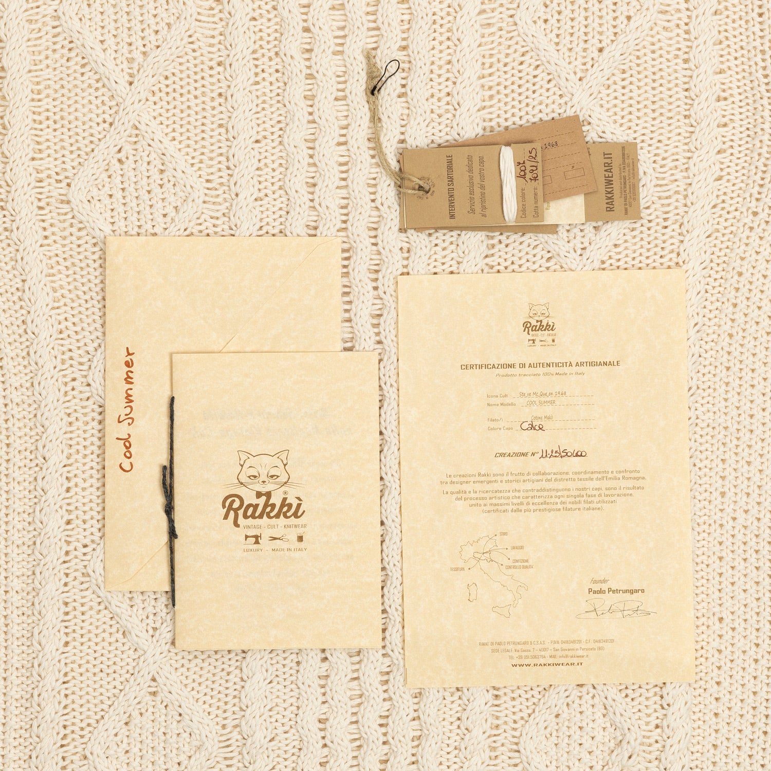 RAKKI's creations are inspired by authentic models and are finished in iconic knitted pieces. A heritage style that makes its owner the happy protagonist of a unique masterpiece.