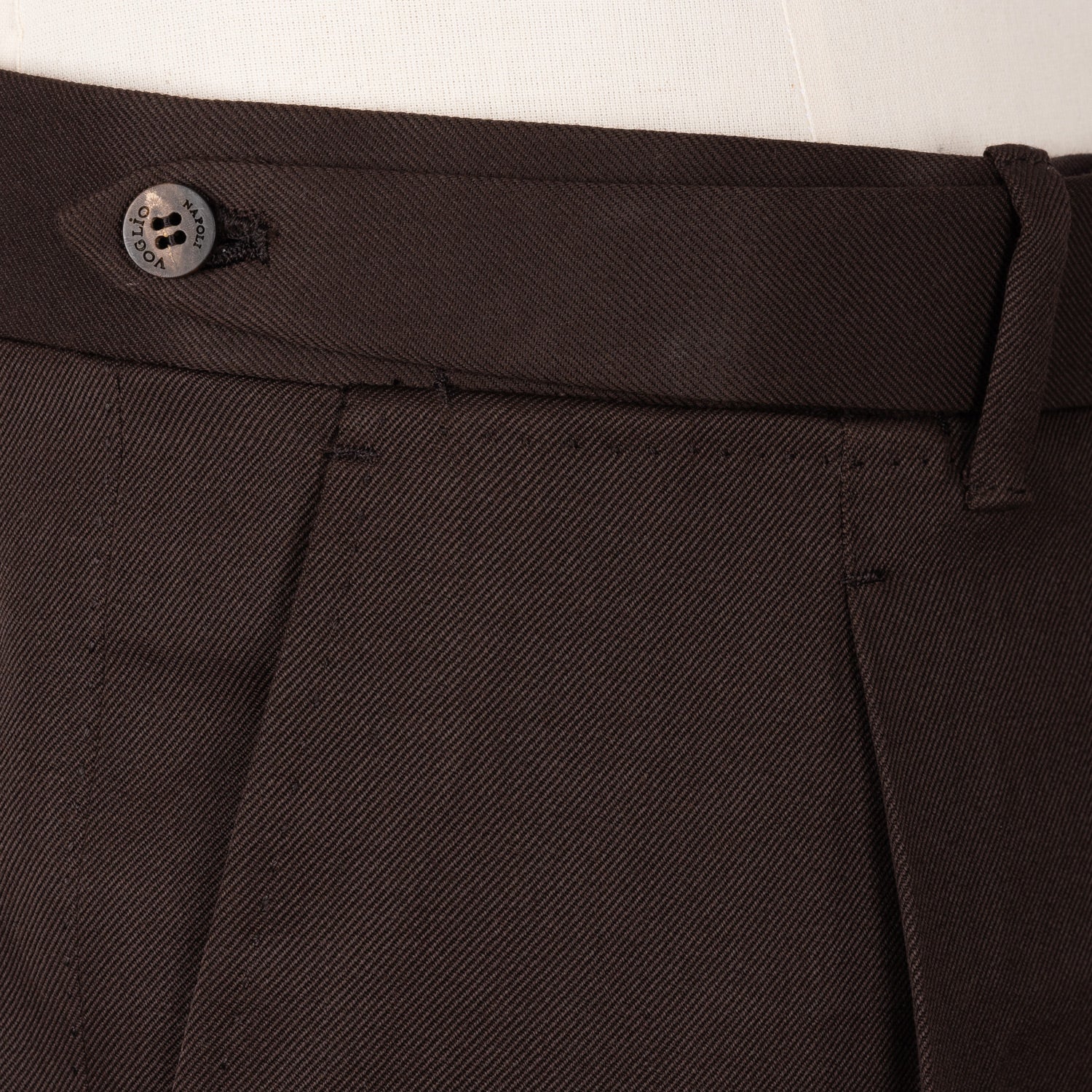 The Voglio family has combined sartorial details, such as the "Piega Sartoriale" or the "Cintura Anello Sartoriale", with a higher rise and a slightly wider leg. Trousers made entirely by hand as the incarnation of Neapolitan trouser tailoring.