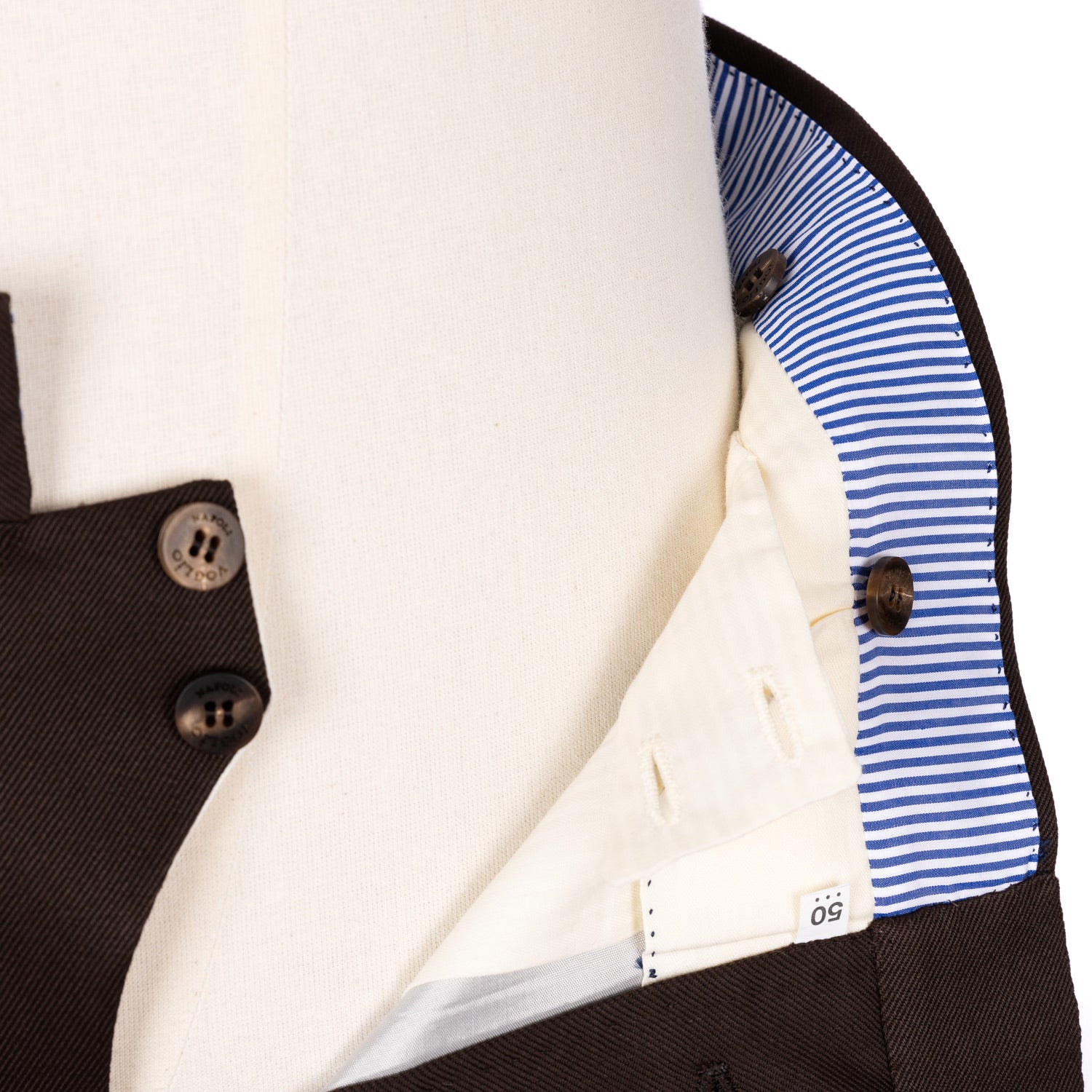 • "Fintone Bottone" buttoned front with "Pancerina" waistband