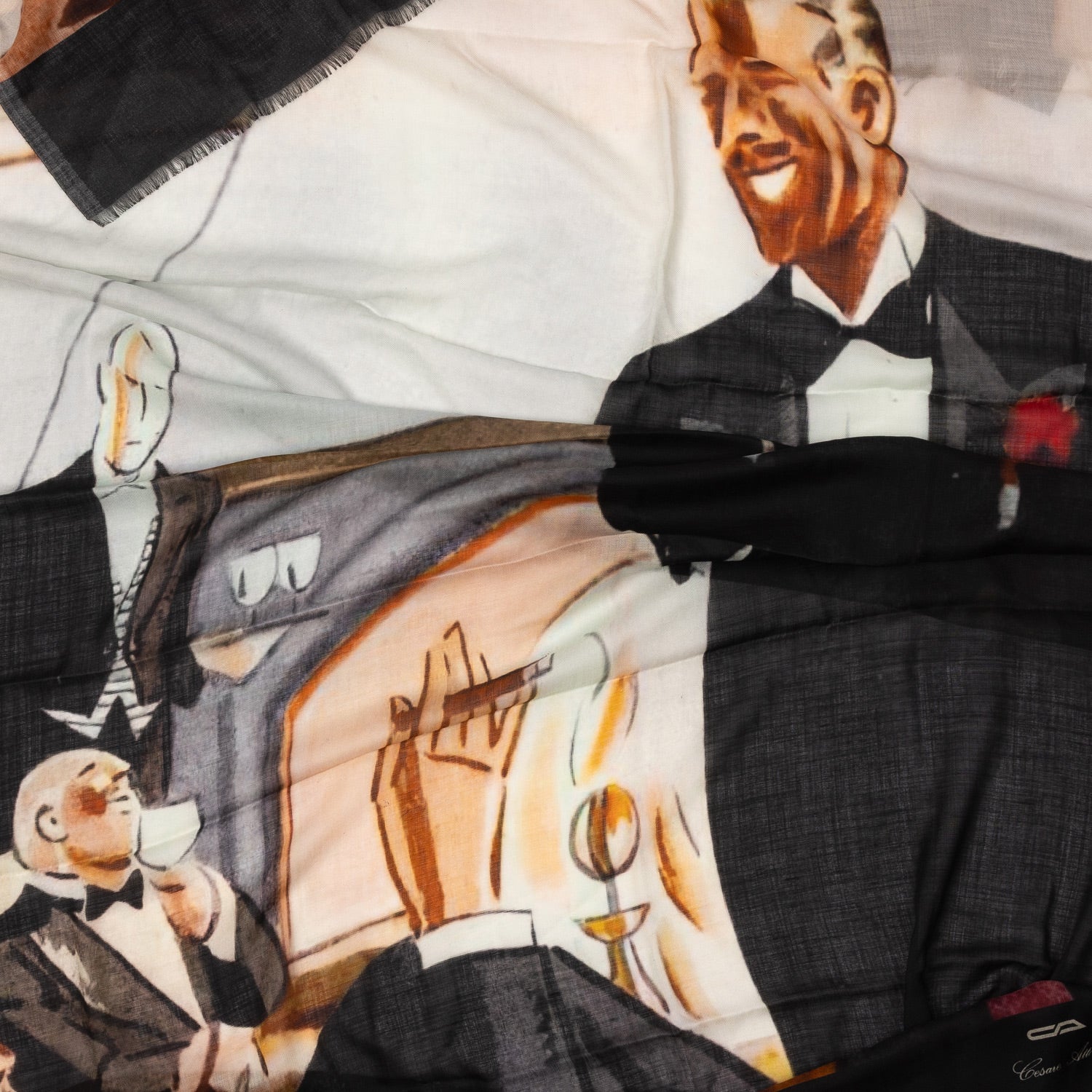 The "Black Tie Cocktail" pattern interprets the history of Neapolitan gentlemen in evening tuxedos and was designed by an artist who is a friend of the Attolini family.