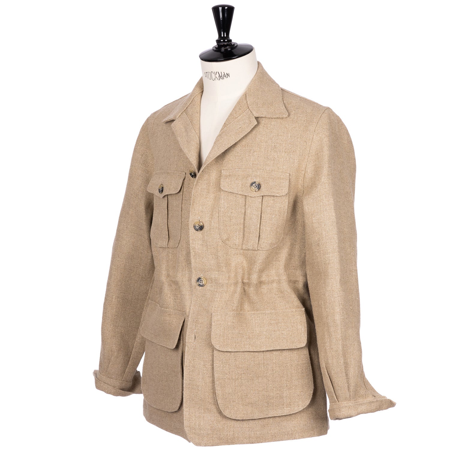 Justo Gimeno exclusively for MJ: A field jacket made from original Irish linen by Spence Bryson. A quality curated by Mj from Spence Bryson that is normally used for upholstery. The unlined finish of these jackets turns the weight into a form-filling moment.