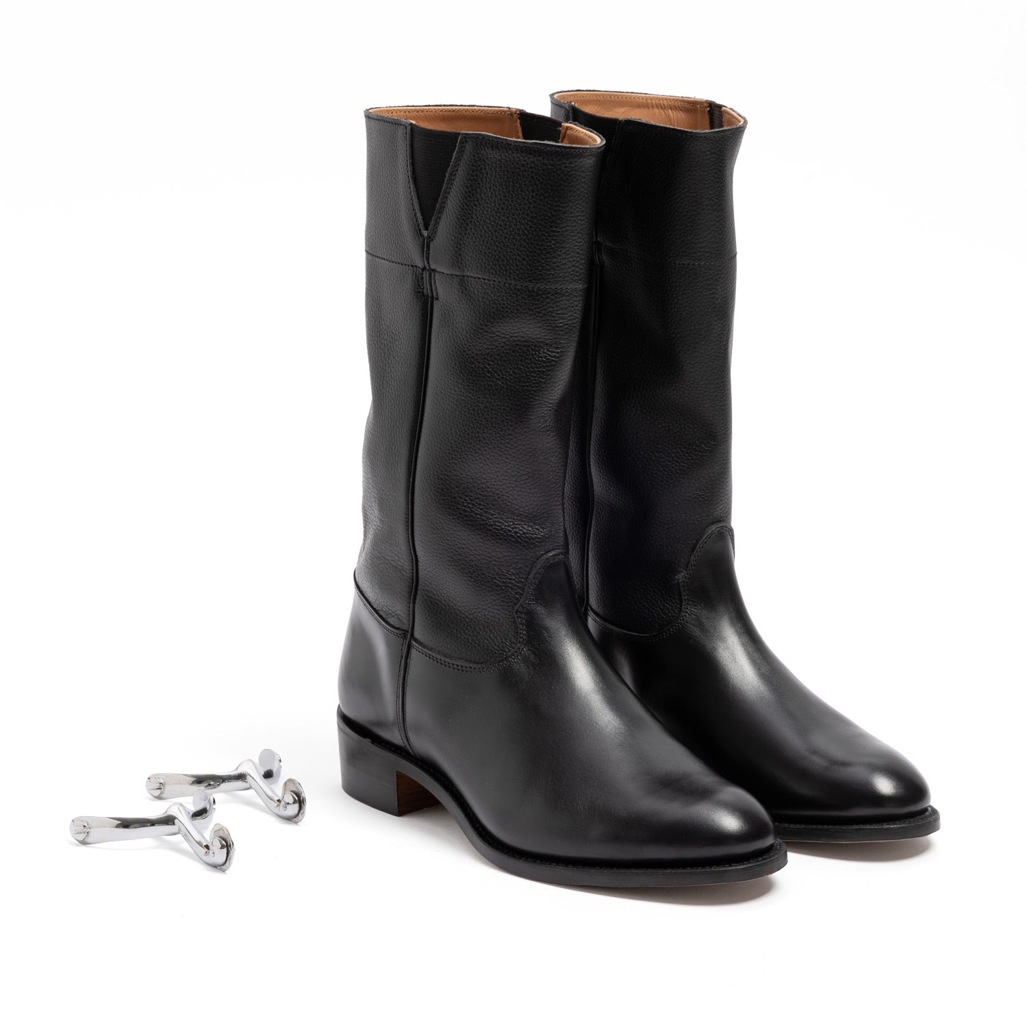 An original Wellington boot from the Sanders workshop, which can be turned into a real uniform boot with the optional spurs.